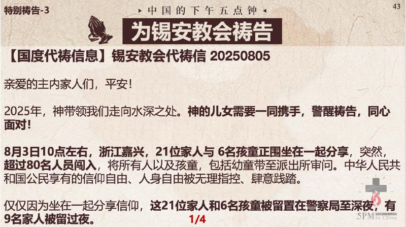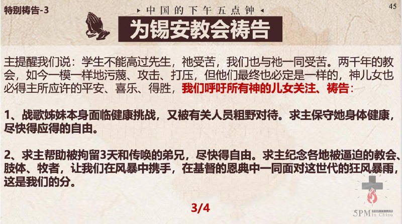 中国的下午五点钟国度祷告会,邀请您参与共同祷告。