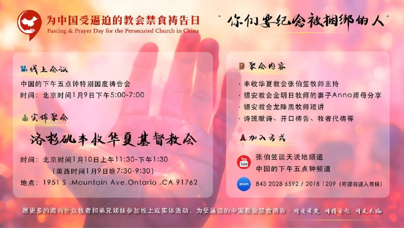 中国的下午五点钟国度祷告会,邀请您参与共同祷告。